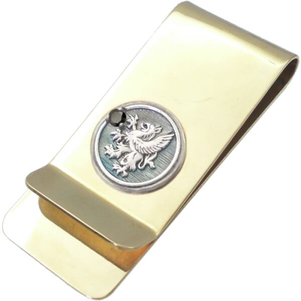 ★王家の象徴グリフォンをデザインにストーンをセッテイングしたブラスマネークリップ。