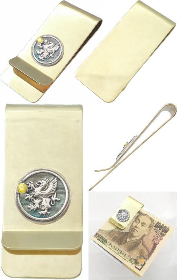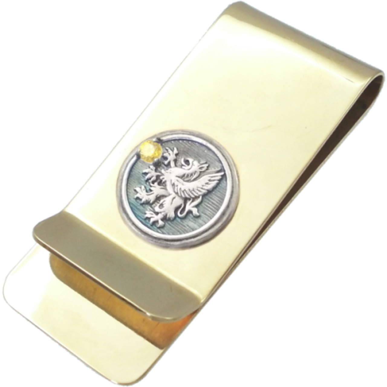 ★王家の象徴グリフォンをデザインにストーンをセッテイングしたブラスマネークリップ。