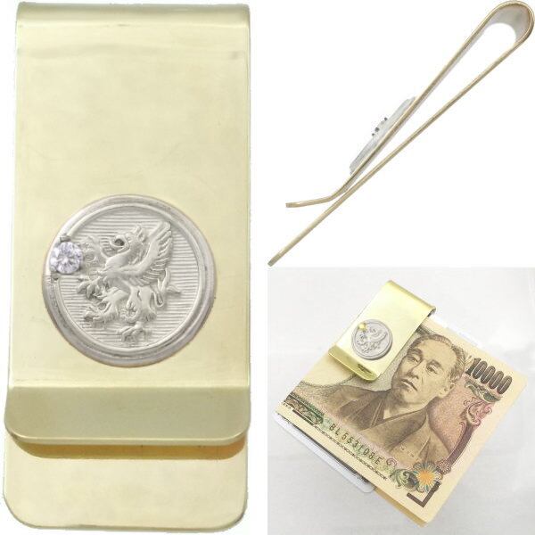(4月)ジルコニア ホワイト グリフォン メダル ブラスマネークリップ 誕生石*BM-1020
