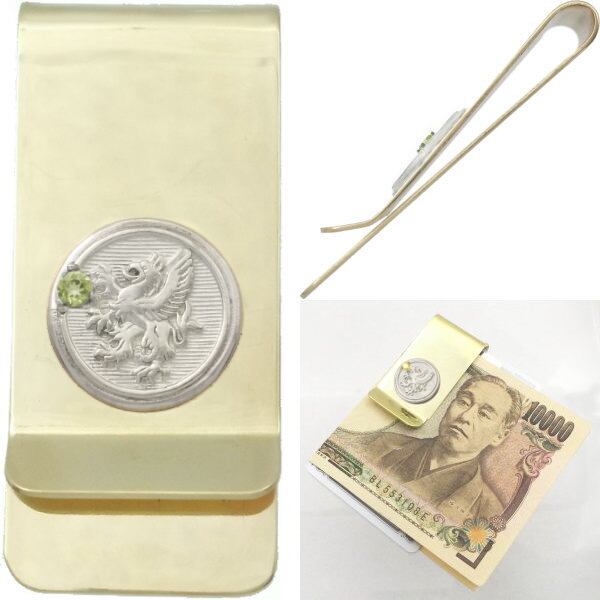 (8月)ペリドットホワイト グリフォン メダル ブラスマネークリップ 誕生石*BM-1020