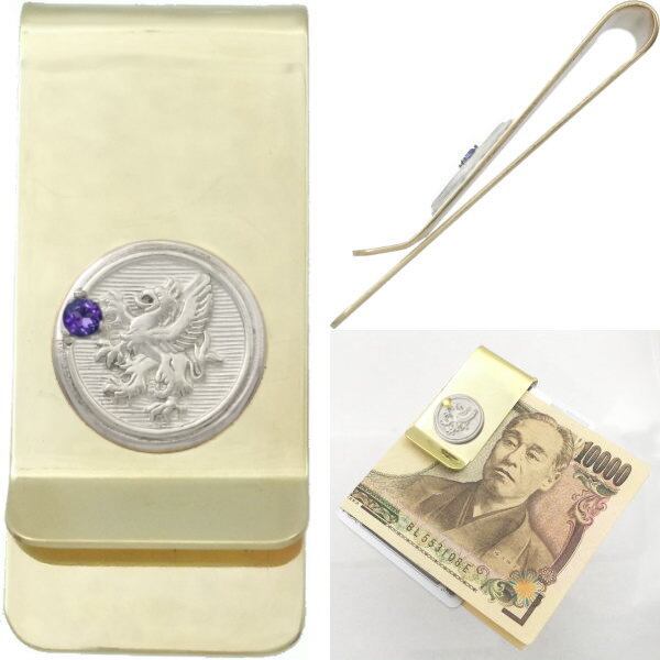 (9月)サファイア ホワイト グリフォン メダル ブラスマネークリップ 誕生石*BM-1020