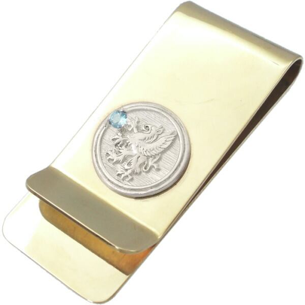 (11月)ブルートパーズ ホワイト グリフォン メダル ブラスマネークリップ 誕生石*BM-1020