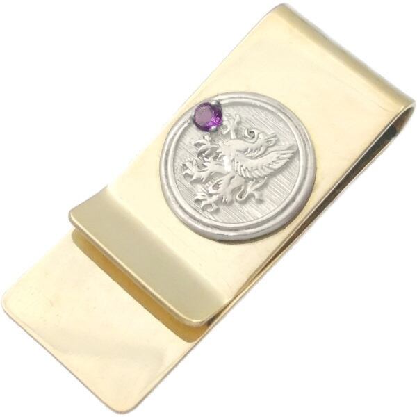(2月)アメジスト ホワイト グリフォン メダル スリムブラスマネークリップ 誕生石*BM-1021