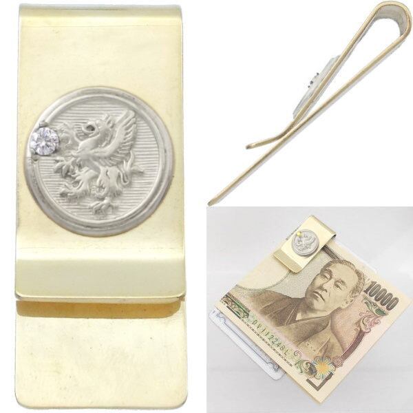 (4月)ジルコニア ホワイト グリフォン メダル スリムブラスマネークリップ 誕生石*BM-1021