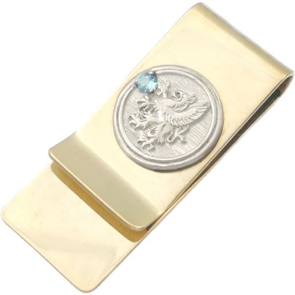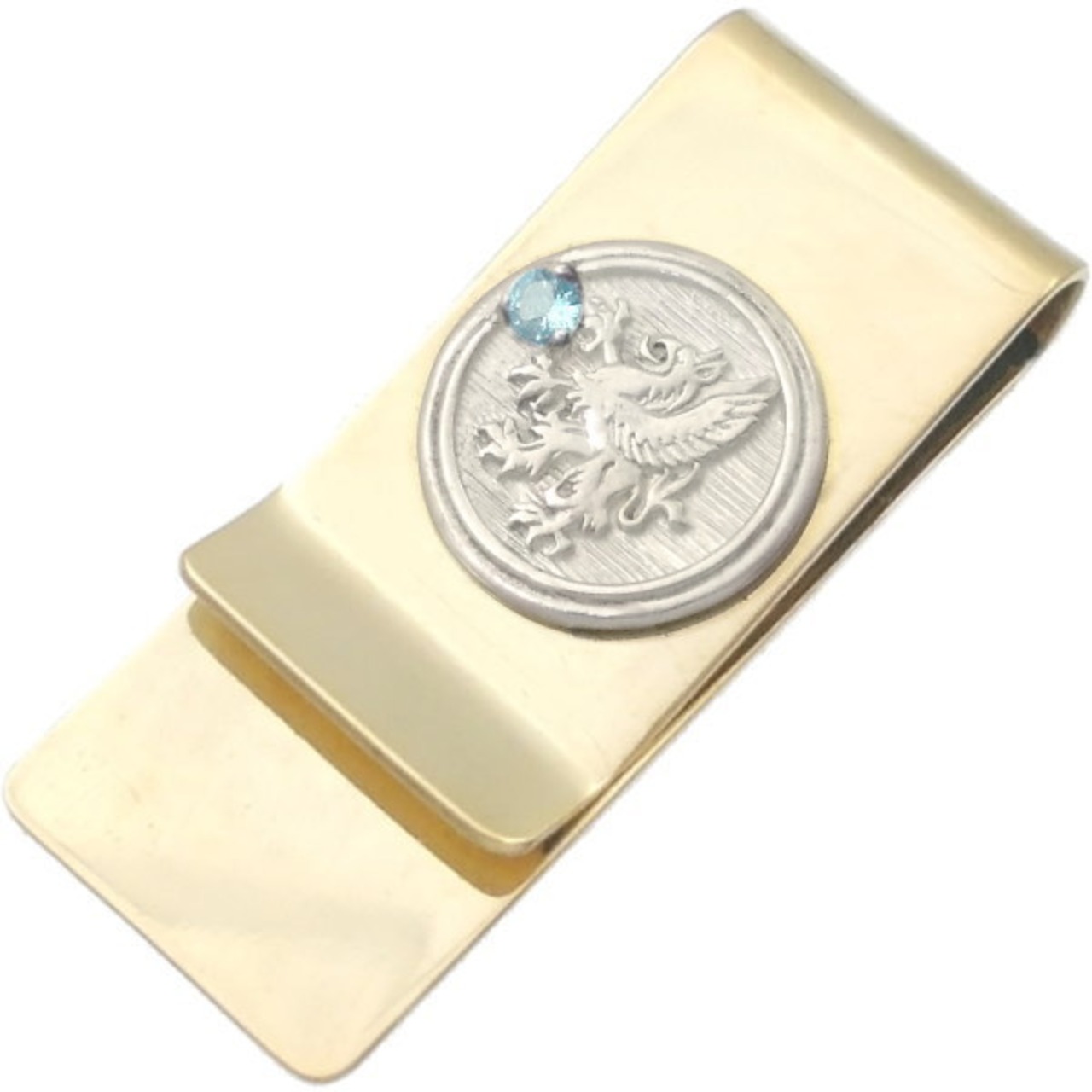 ★王家の象徴グリフォンをデザインにストーンをセッテイングしたブラスマネークリップ。