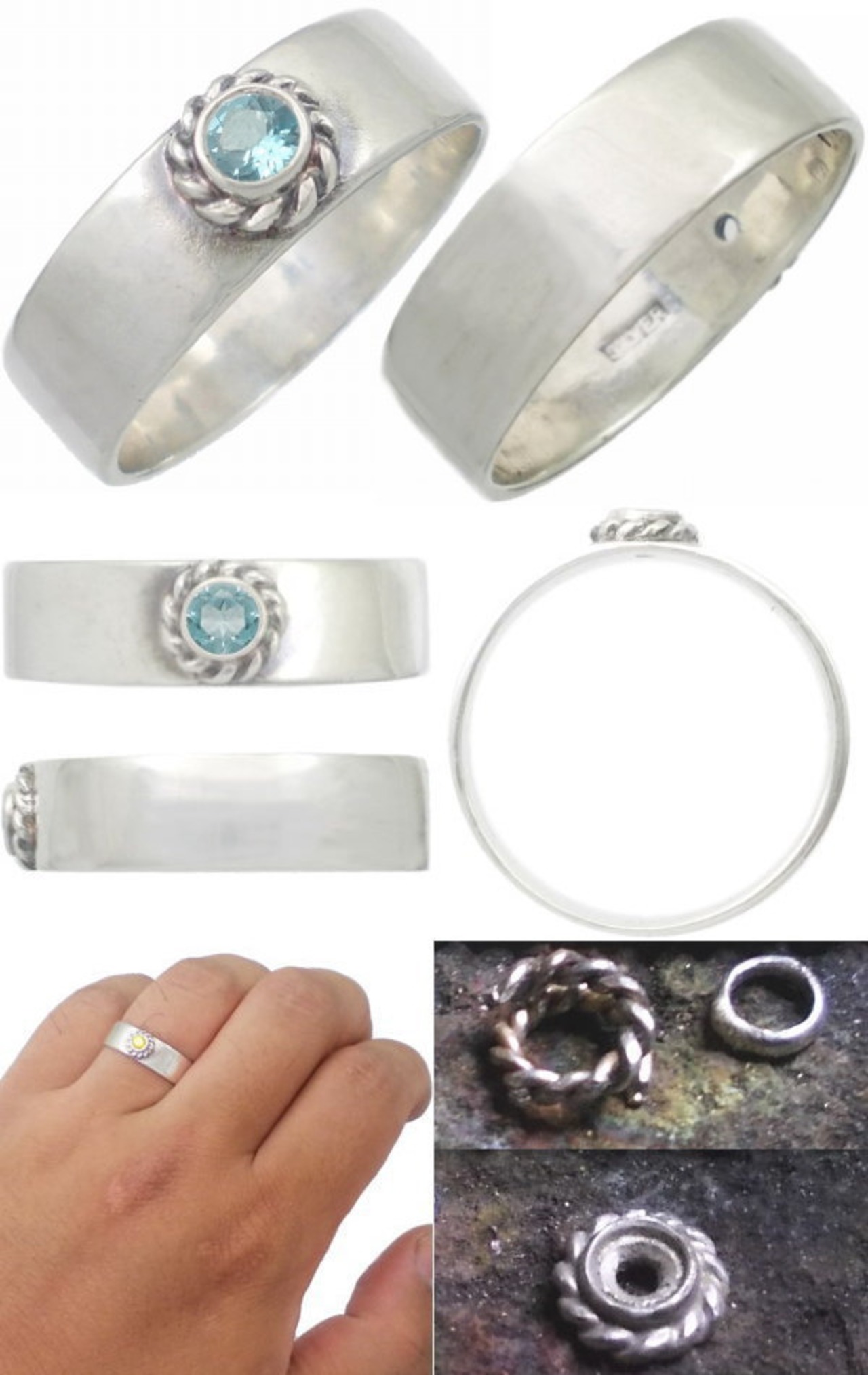 ナバホ族のジュエリーで良く見られるシルバーの線と板を切り出し、捻って作り上げたツイステッドワイヤーアレンジのバースデーストーンリング。デザインだけ似せて削りだした物とは違う質感に注目。