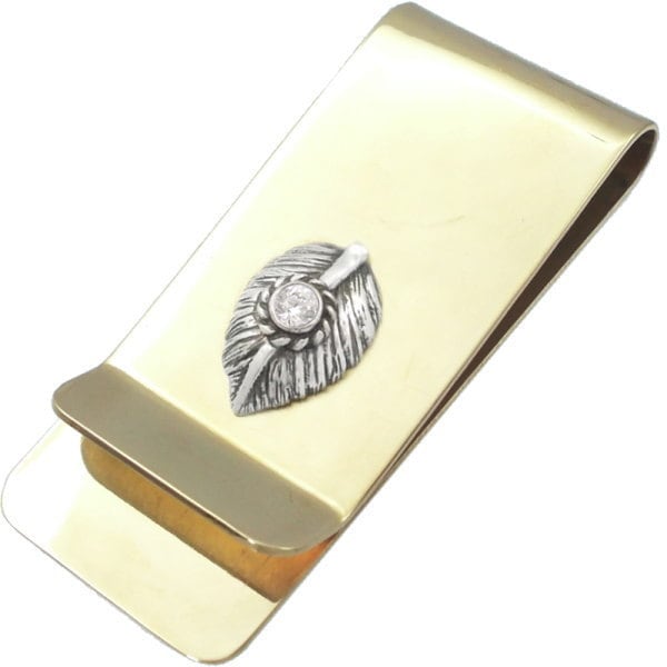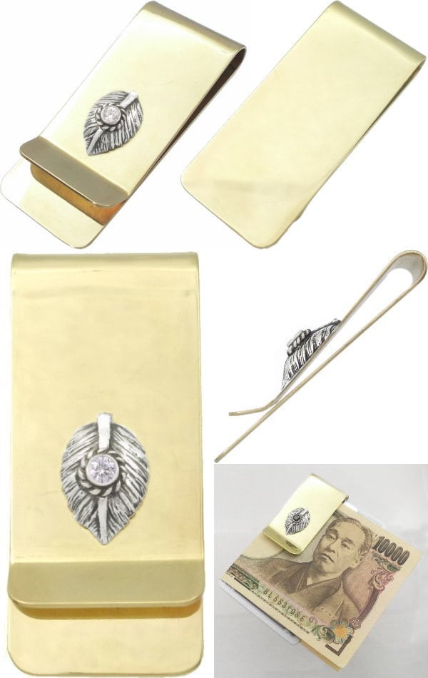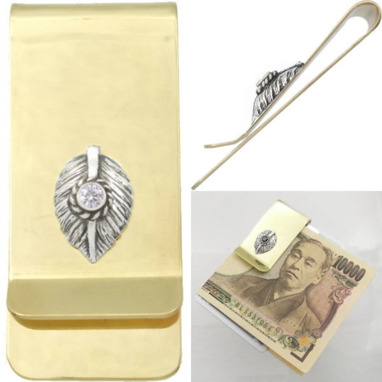 (4月)ジルコニア ブラック ネイディブ ハート フェザー ブラスマネークリップ 誕生石*BM-1023