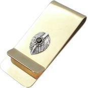 ★鷲の旨の羽「ハート」とハンドメイドの石枠とコンビのブラスマネークリップ。