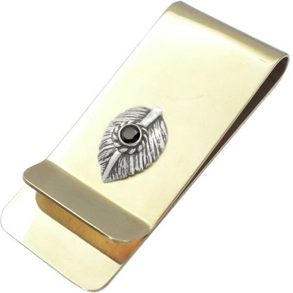 ブラックCZ ブラック ネイディブ ハート フェザー ブラスマネークリップ キュービックジルコニア使用*BM-1023