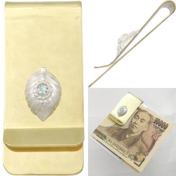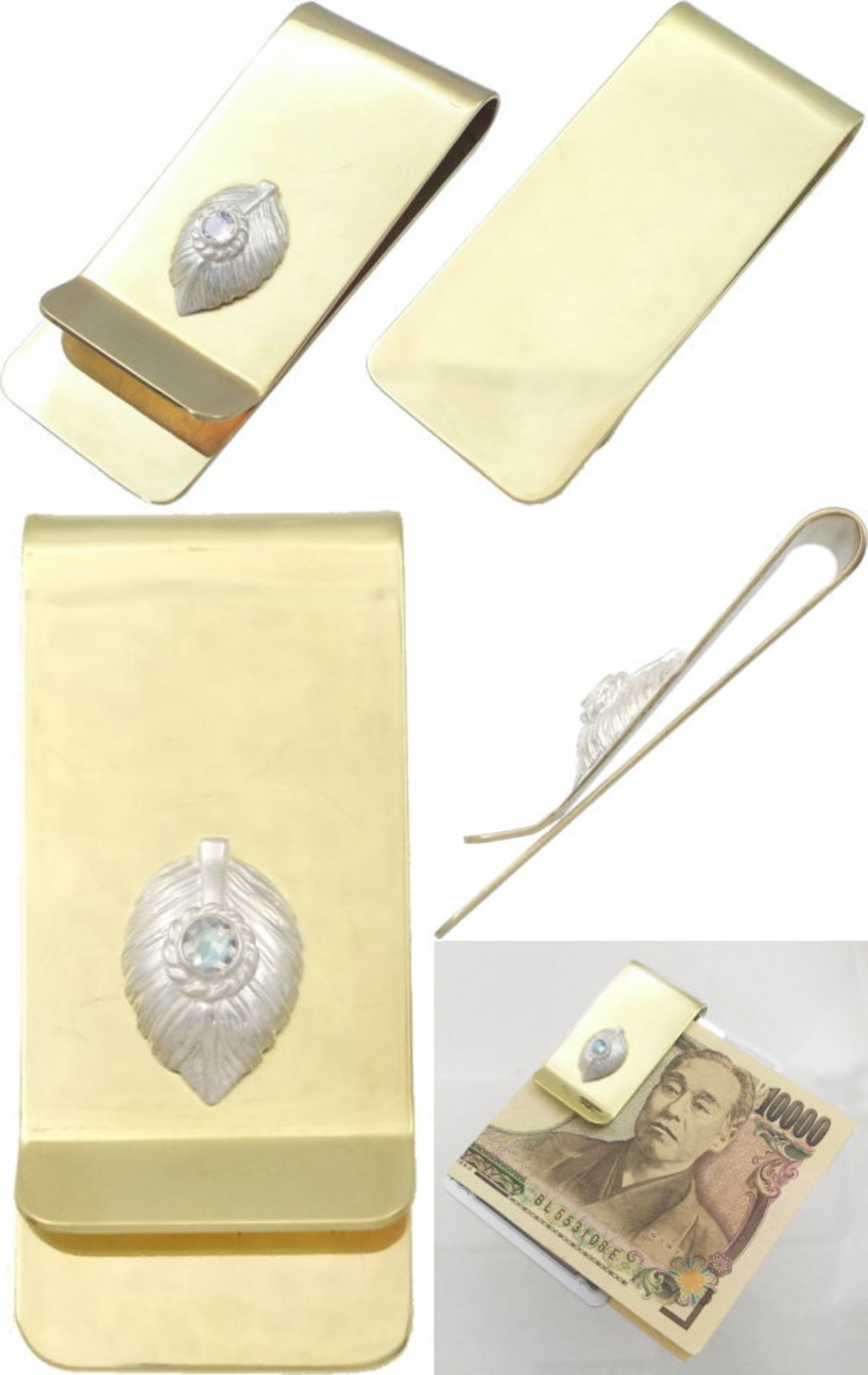 (6月)ブルームーンストーン ホワイト ネイディブ ハート フェザー ブラスマネークリップ 誕生石*BM-1022