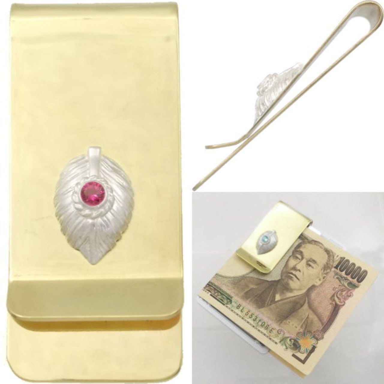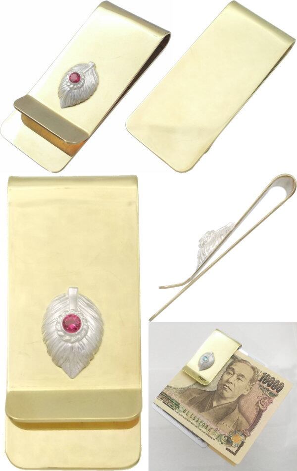(7月)ルビー ホワイト ネイディブ ハート フェザー ブラスマネークリップ 誕生石*BM-1022