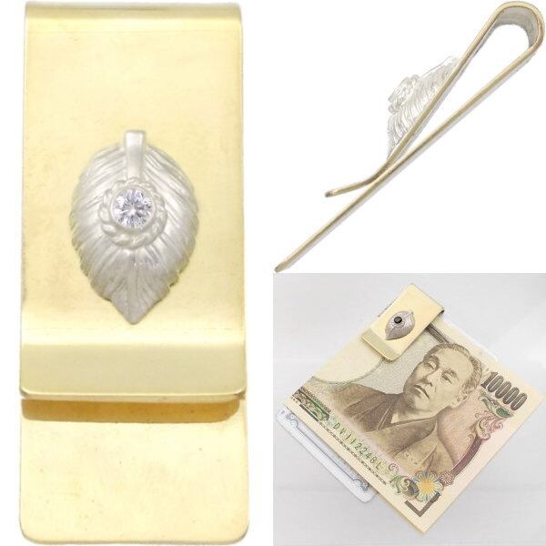 (4月)ジルコニア ホワイト グリフォン メダルスリムブラスマネークリップ 誕生石*BM-1024