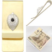 ★鷲の旨の羽「ハート」とハンドメイドの石枠とコンビのブラスマネークリップ。