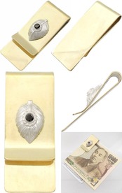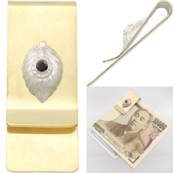 ブラックCZ ホワイト グリフォン メダルスリムブラスマネークリップ キュービックジルコニア使用*BM-1024