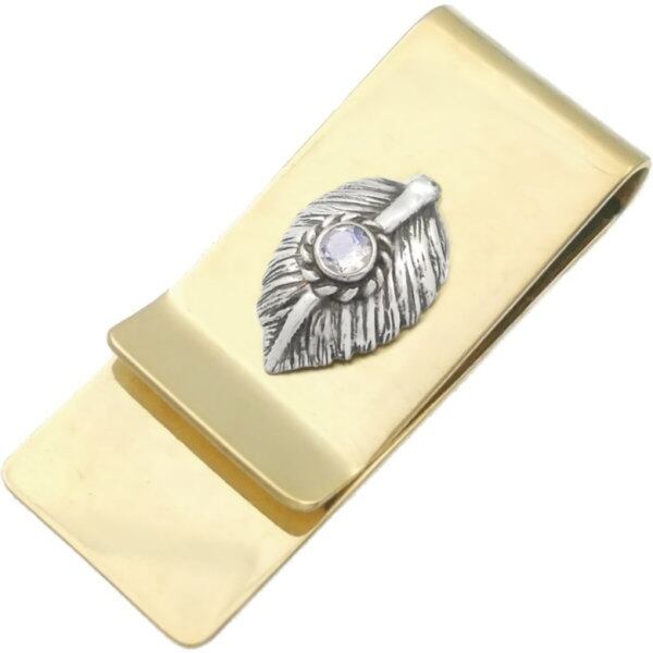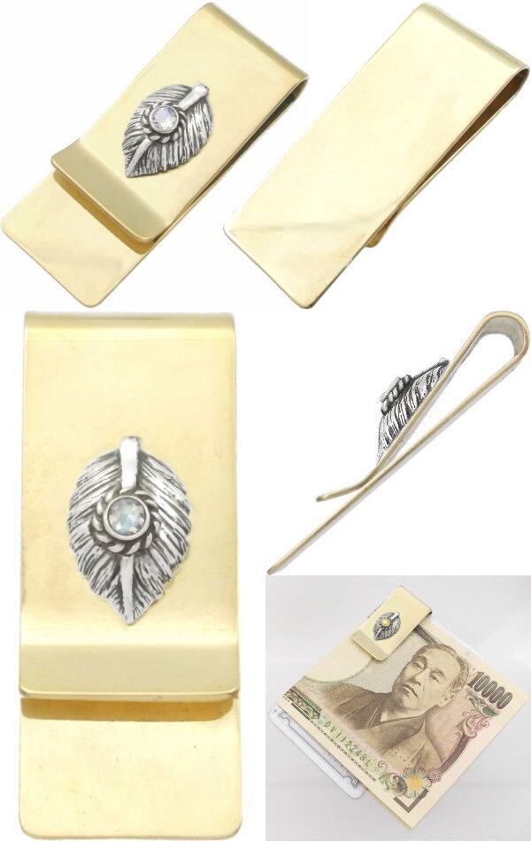 (6月)ブルームーンストーン ブラック グリフォン メダルスリムブラスマネークリップ 誕生石*BM-1025
