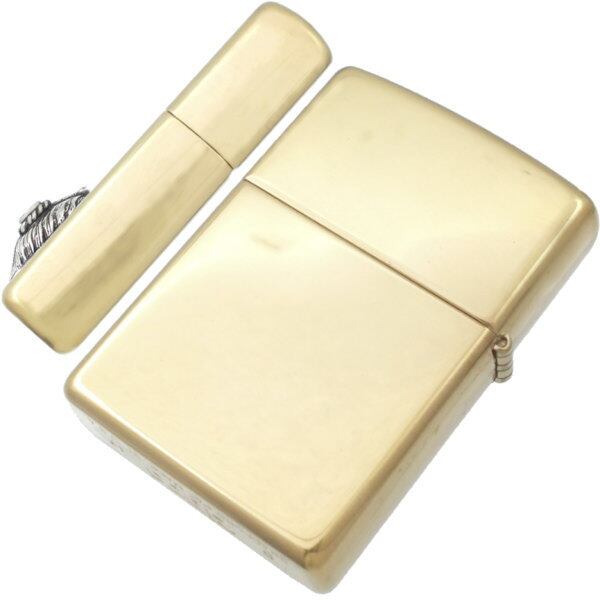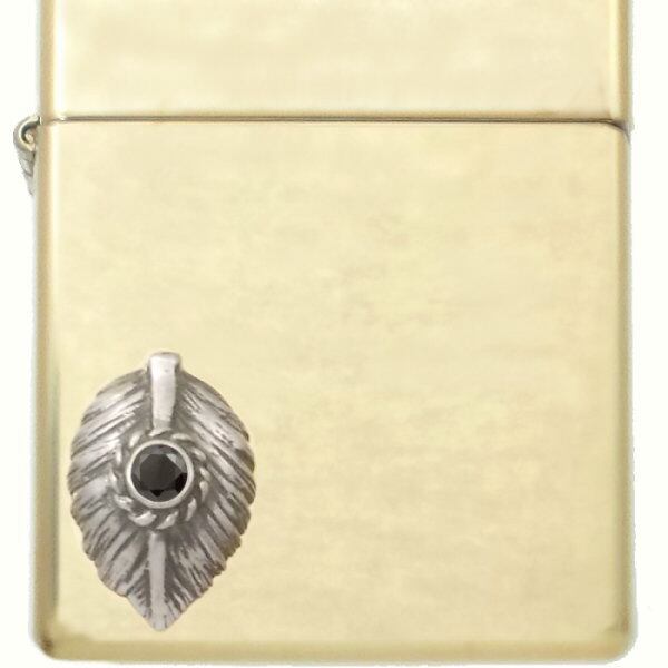 ★鷲の旨の羽「ハート」とハンドメイドの石枠とコンビのブラスボディジッポ。