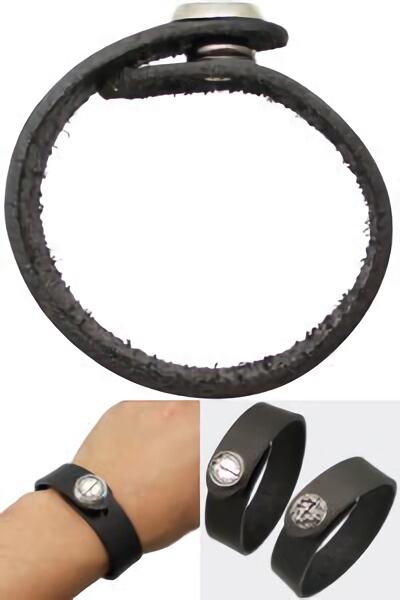 ★シンプルなコンチョタイプのレザーブレスでもエネミーらしい機能へのコダワリを集約!
