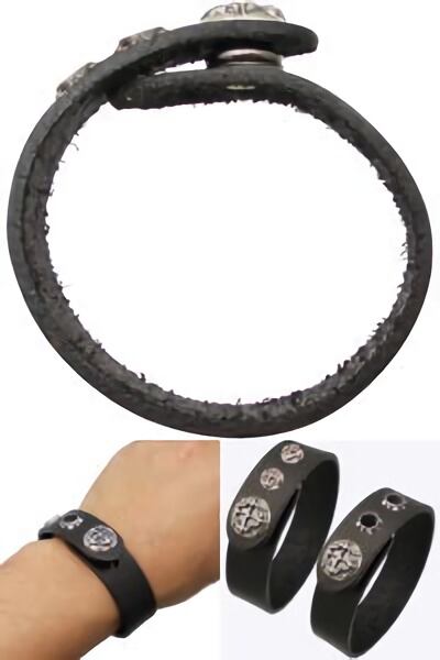 ★シンプルなコンチョタイプのレザーブレスでもエネミーらしい機能へのコダワリを集約!