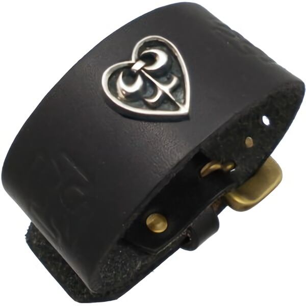 エネミー ゴシックハートシルバーダブルピンレザーブレスレット *EB-21