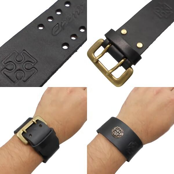 3.5mmの肉厚なレザーと真鍮製のダブルピンバックルとバラエティに富んだモチーフとの組み合わせが楽しめるブレスレット。バックル、リベットも無垢の真鍮なのでシルバー同様に経年変化が進むのでレザー共々使いこんで自分流に馴染ませる楽しみもある素材の組み合わせ。