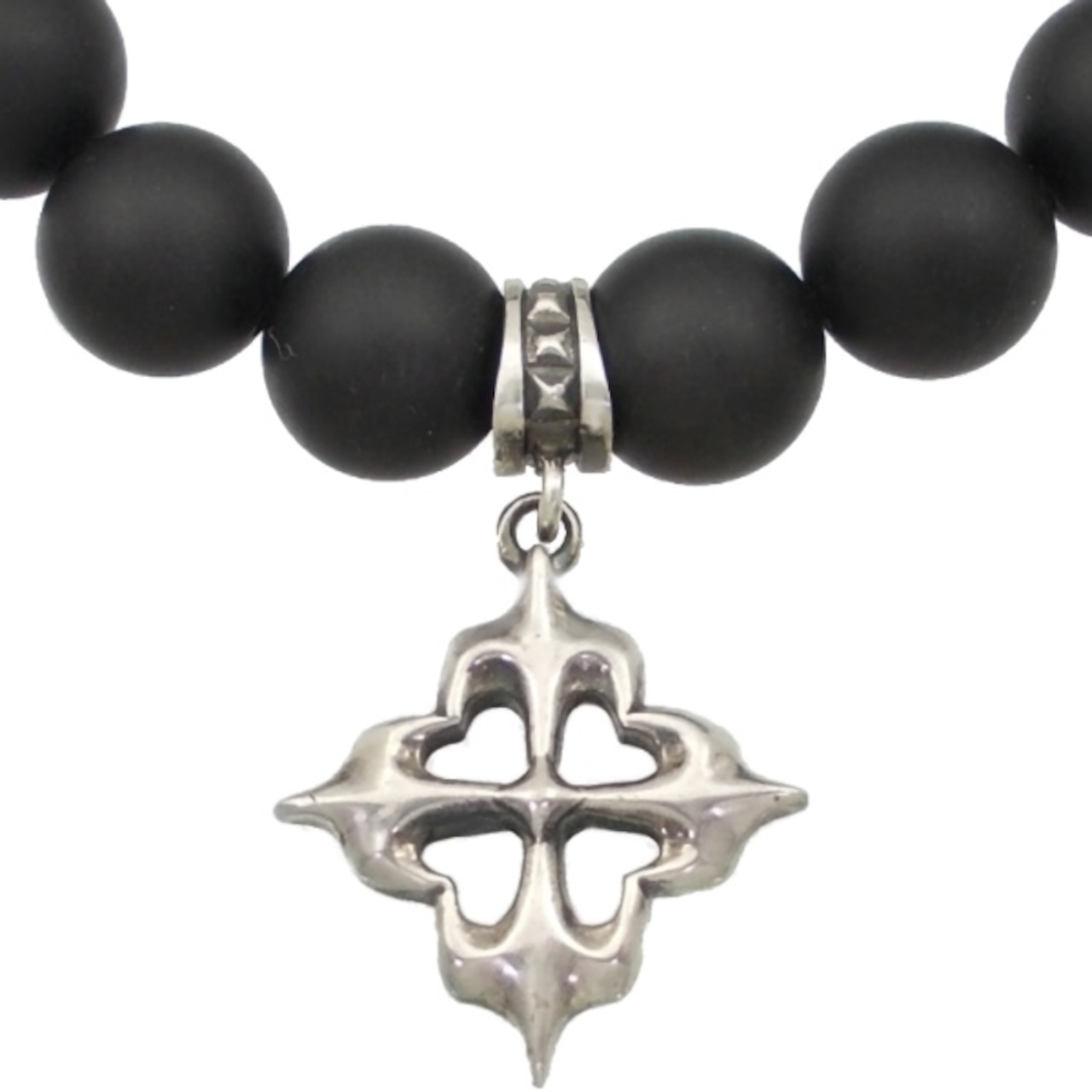 忍耐と成長に導くオニキスは成功をもたらすお守りとしても人気の石。つや消しの落ち着いたブラックとスタッズデザインのパーツからぶら下がるゴシック調デザインのチャームの数々との相性も抜群。