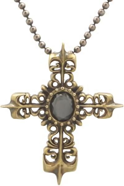 メタリックなあやしい輝きを放つヘマタイトを中心に伸びるエネミーおなじみのアロークロス、しかしそれを取り巻く躍動的で気品あふれる唐草がクラシカルなイメージを更に引き立て格調高いデザインになっている。さらに裏面にも小さなクロスを配置するなど妥協なき様式美への追求も着ける人の心を揺さぶってくれる。