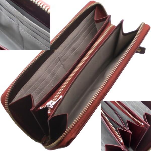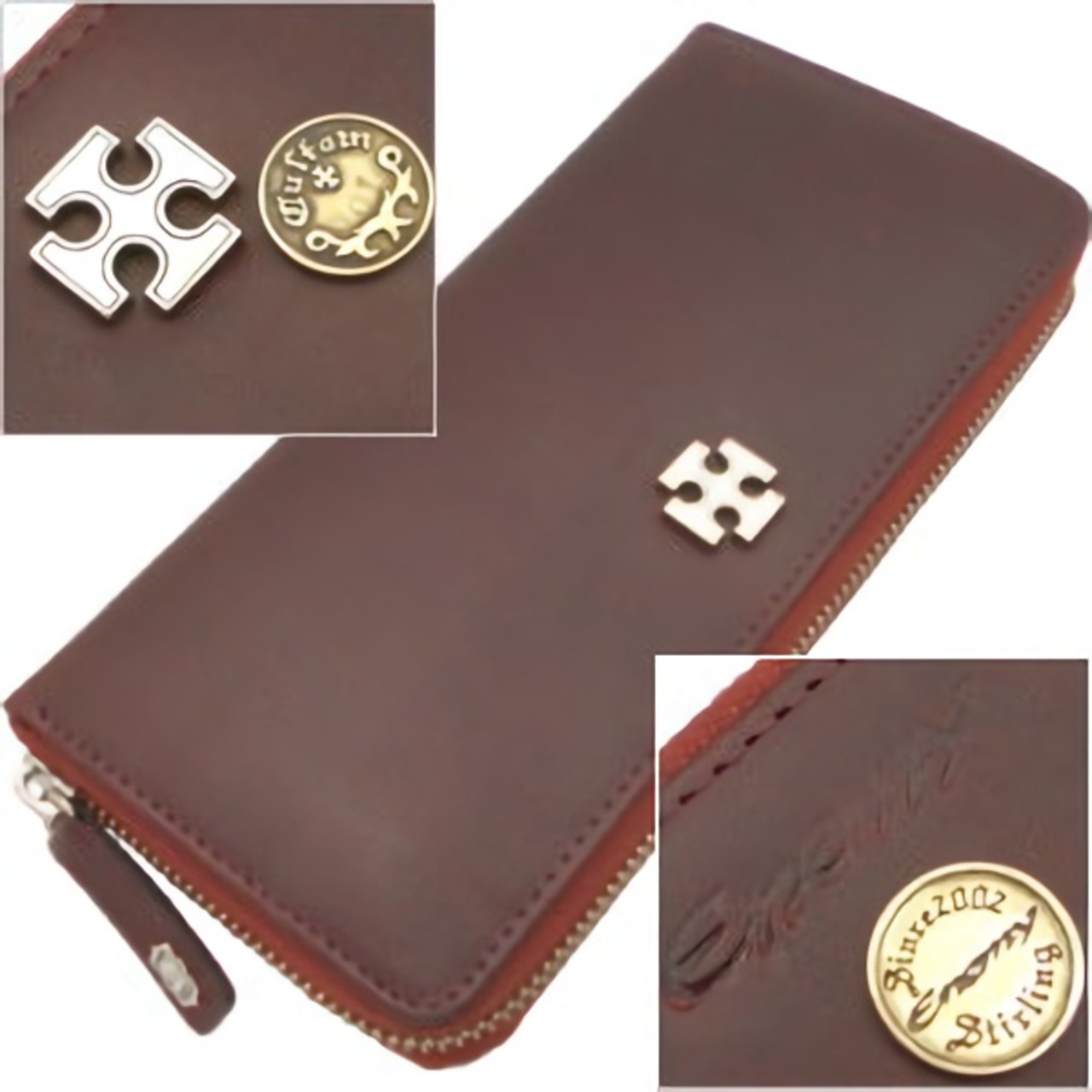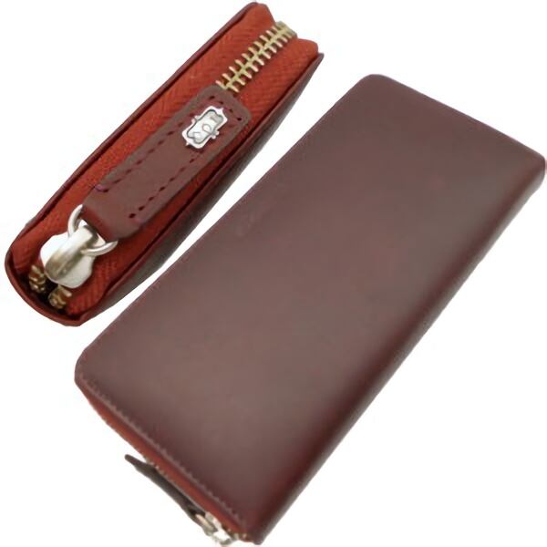 ★落着いた風合いのレディッシュブラウンにクロス!1点製作のラウンドジッパーウォレット。