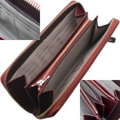センターの小銭入れ部分のジッパーは通常直線が多いがこちらは手間の掛かるL型90度まで開くので開口部分が大きく使い勝手も抜群。