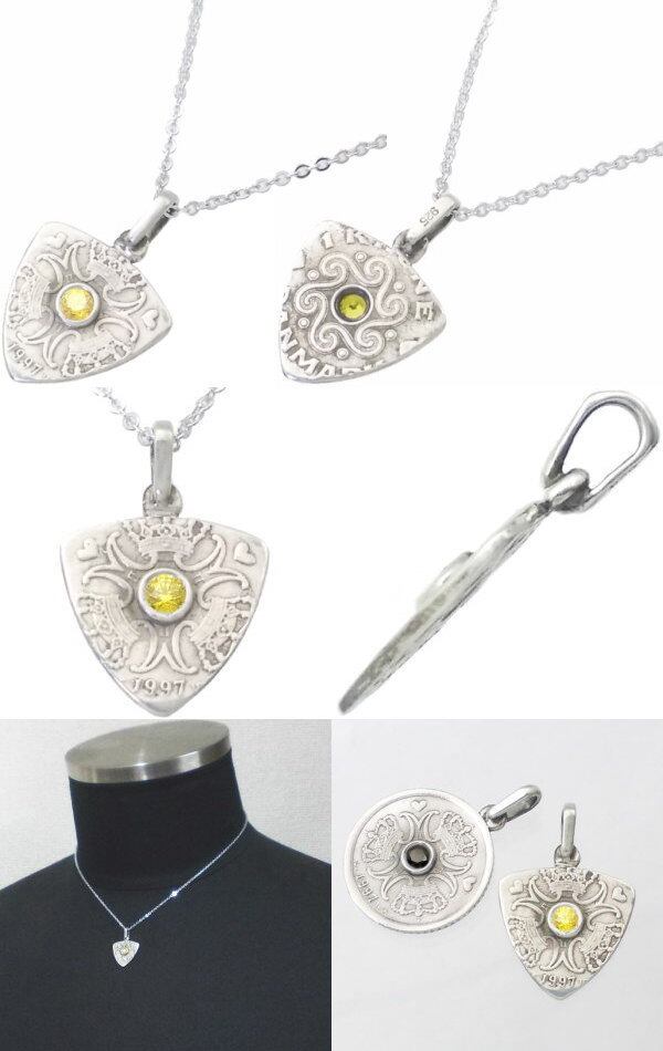 イエローC Z クローネ ピック コイン シルバーペンダントネックレス△キュービックジルコニア使用*BP-1052