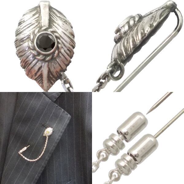 ★鷲の旨の羽「ハート」とハンドメイドの石枠とコンビのフェザーラペルピン。