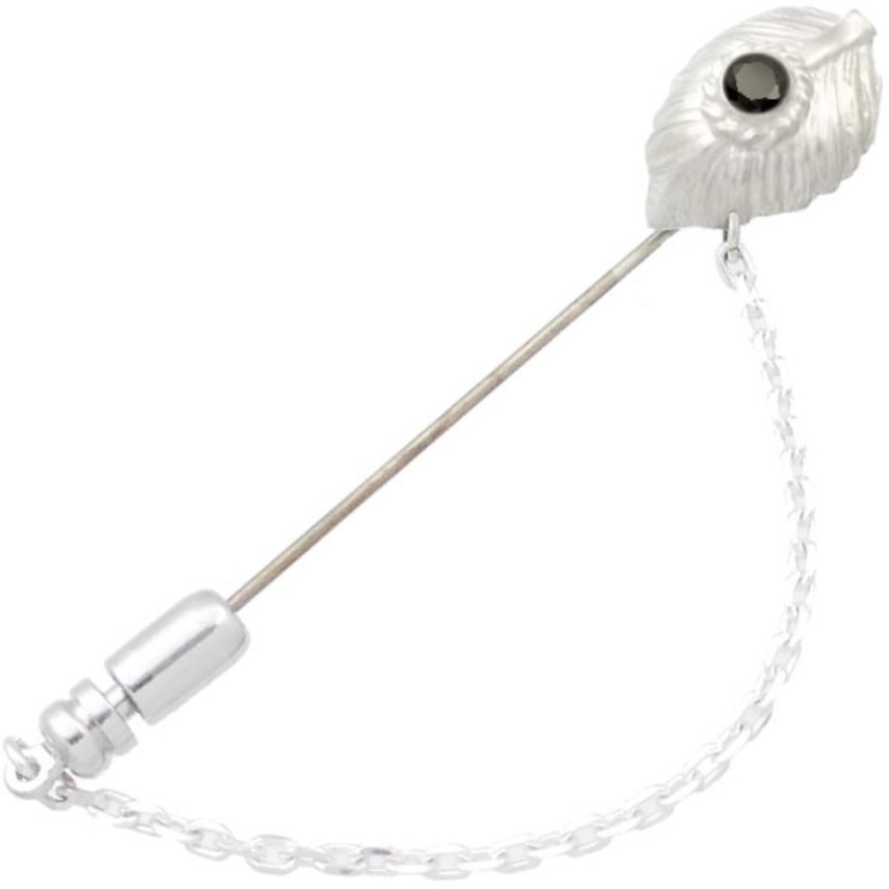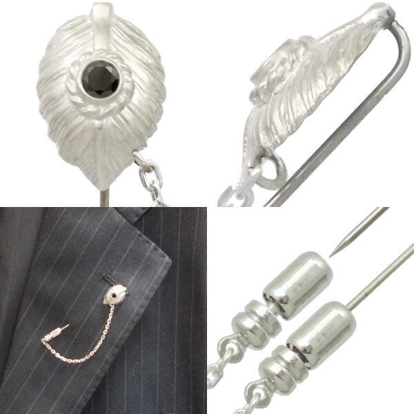 ブラックCZ ホワイト ネイディブ ハート フェザー チェーン シルバー ラペルピン*BK-1207