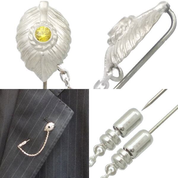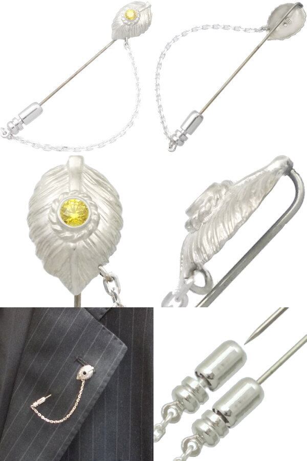 イエローC Z ホワイト ネイディブ ハート フェザー チェーン シルバー ラペルピン*BK-1207
