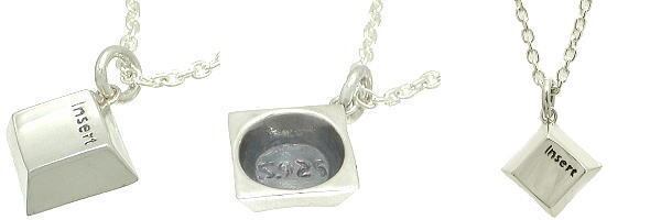 ★これでパソコンアレルギーも解消?(高さ29mm幅20mm、チェーン別)この無機質な形、パソコンユーザーにはおなじみのキーボタン型のペンダント。メタリックな落ち着きもありシンプルさ加減も絶妙、しかしキーの文字は意味深なところを選んでいるあたりはスワンキーらしさを感じます。癖のないフォルムは男女問わずオススメです。