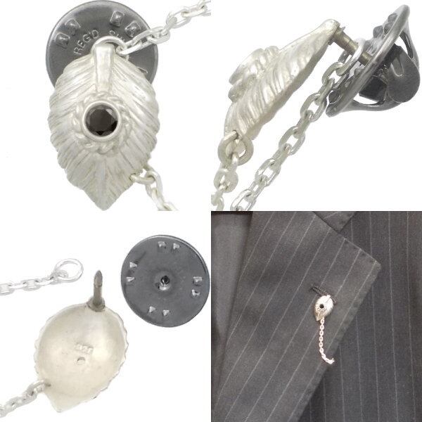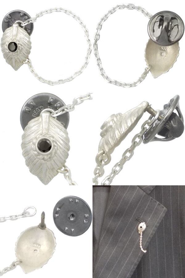 ブラックCZ ホワイト ネイディブ ハート フェザー チェーン シルバー ピンバッジ ピンズ*BK-1104