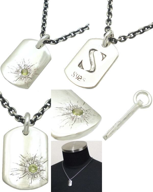 (8月)ペリドット 弾痕 シルバー ペンダント トップ *SP-59-08