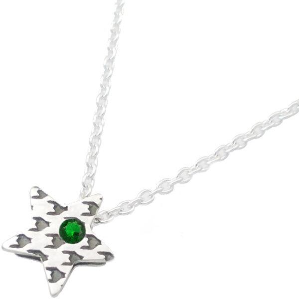 (5月)エメラルドグラス スター チドリ (千鳥格子) シルバー ペンダント トップ*SP-68-05