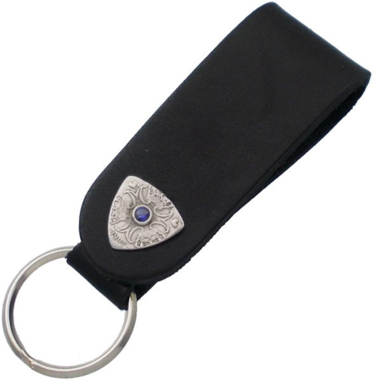 (9月)サファイア クローネ ピック コイン ブラックレザー キーホルダー 誕生石*BH-011