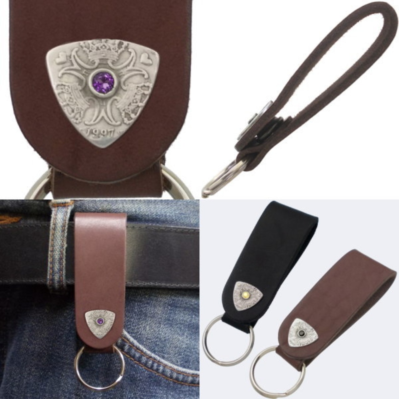 誕生石が選べるのはモチロンのことブラック、イエローのジルコニアも選べシルバーの燻しとレザーのブラウンとのコンビで年齢を選ばずお勧めできるスタンダードなキーホルダーとして日常使いにオススメです。