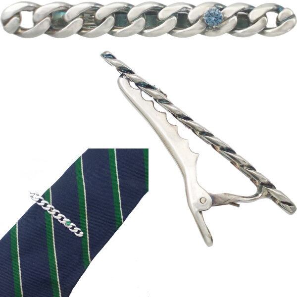 ★6面キヘイチェーンに誕生石をセッティングしたシンプルなネクタイピン。