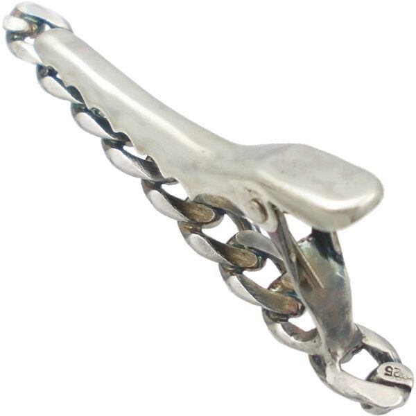 シルバーチェーンの光沢と燻し仕上げの陰影がギラギラ感の無い落ち着いた質感に仕立てている。裏面は艶消し燻し仕上げで落ち着いた風合いに。