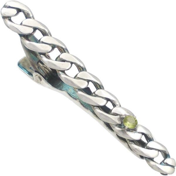 ★6面キヘイチェーンに誕生石をセッティングしたシンプルなネクタイピン。