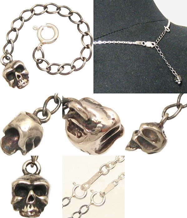 これでシャツとトップとのバランスも簡単に調整でき、しかもアジャスター自体に見せる要素も加わる。長さの調節が基本目的だがスカルの重さによってチェーンの金具が知らぬ間に前に回ってくるようなカッコ悪い状況も軽減できる。