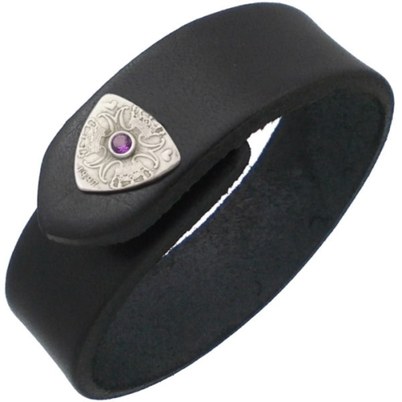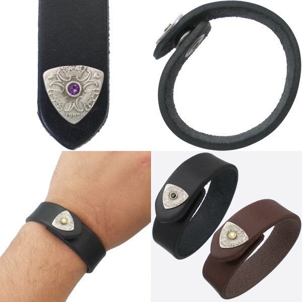(2月)アメジスト クローネ ピック コイン ブラックレザー ブレスレット 誕生石*BB-1015