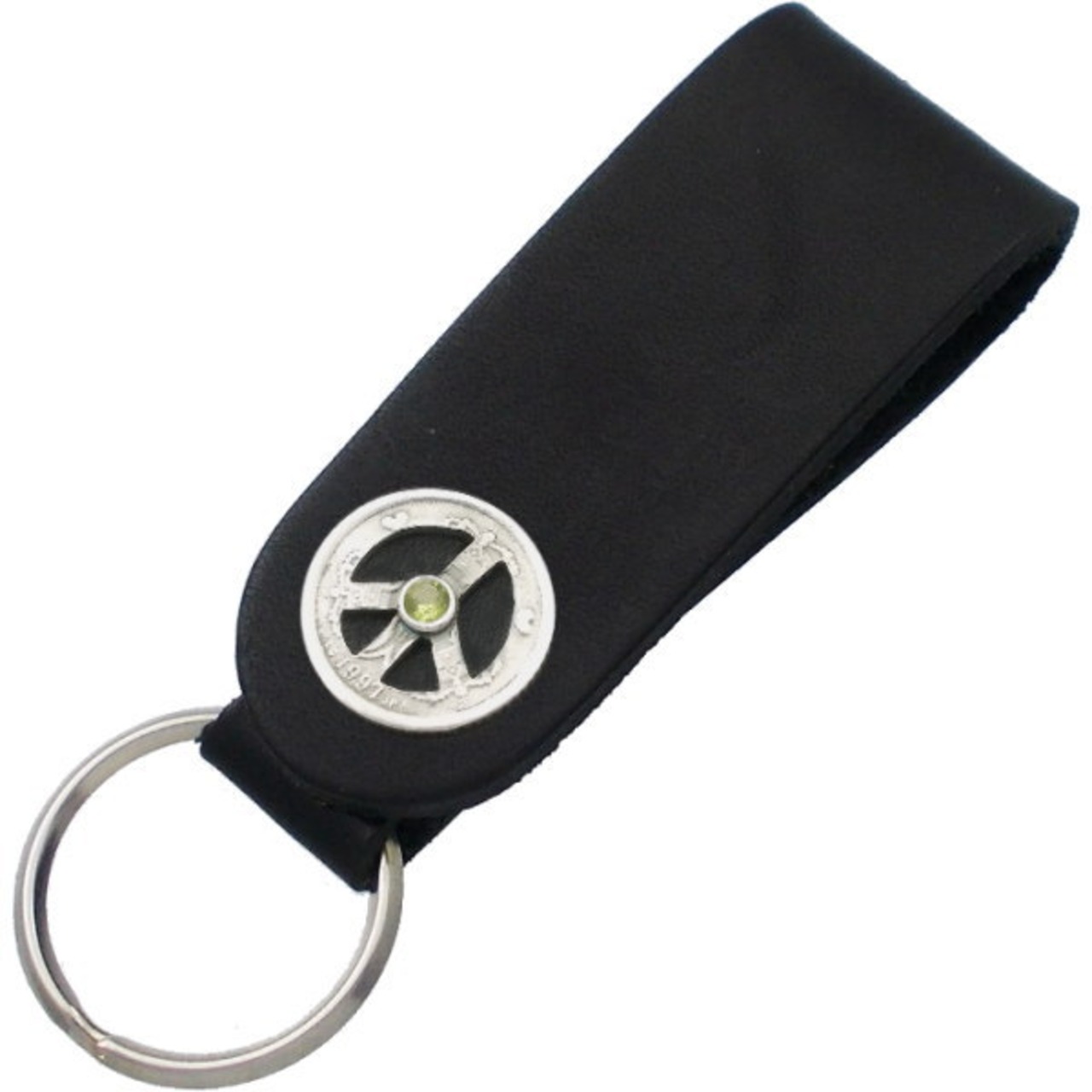 (8月)ペリドット クローネ ピース コイン ブラックレザー キーホルダー 誕生石*BH-013