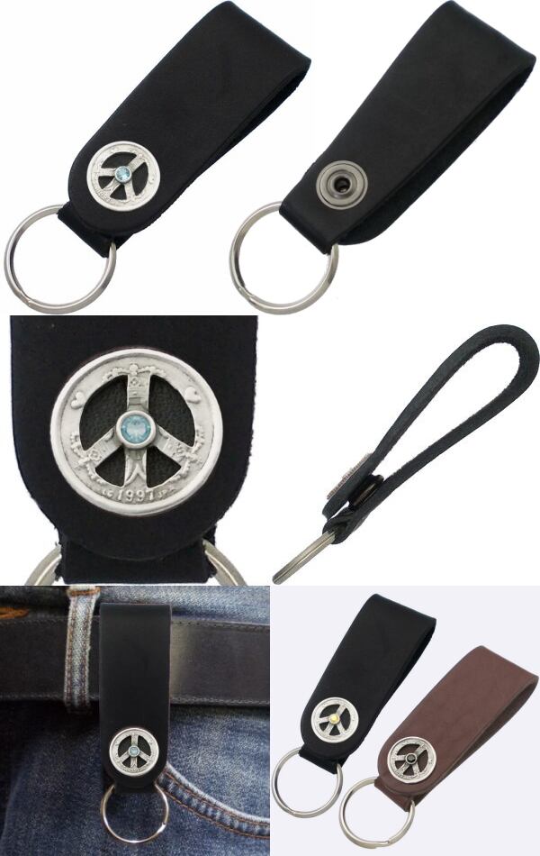 北欧の高福祉で国民の幸福感の高さでも知られるデンマーク、その「幸せを呼ぶコイン」と呼ばれるデンマーククローネをシルバー製コンチョに仕立てブラックとブラウンレザーのシックなループキーホルダーに合せた落ち着きのある組み合わせ。