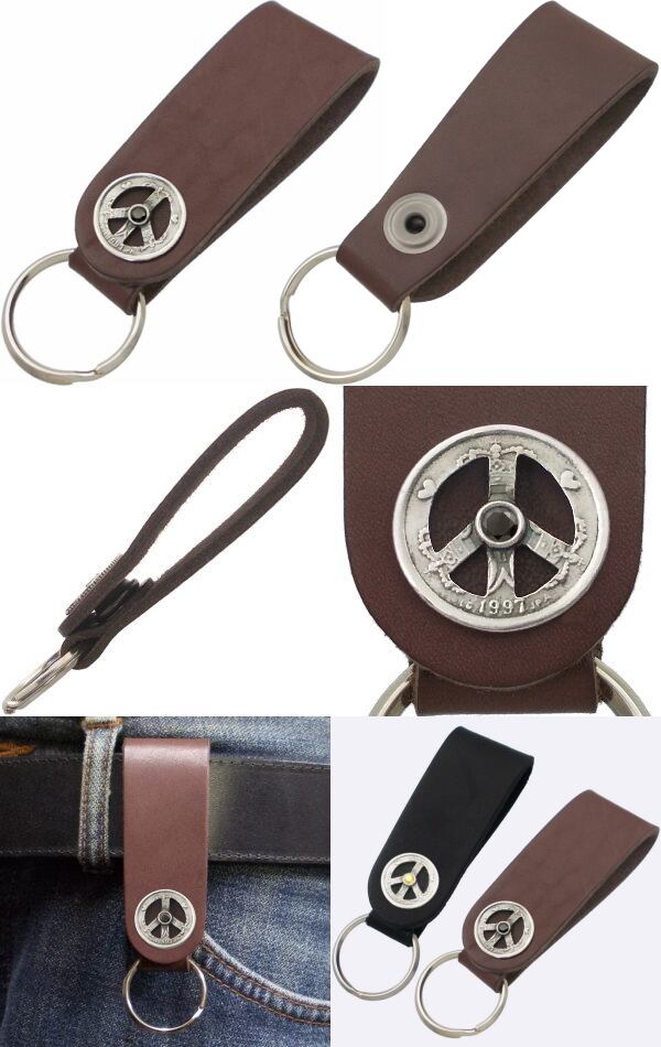 北欧の高福祉で国民の幸福感の高さでも知られるデンマーク、その「幸せを呼ぶコイン」と呼ばれるデンマーククローネをシルバー製コンチョに仕立てブラックとブラウンレザーのシックなループキーホルダーに合せた落ち着きのある組み合わせ。