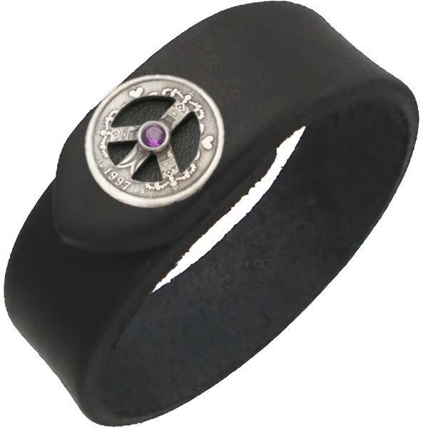 (2月)アメジスト クローネ ピース コイン ブラックレザー ブレスレット 誕生石*BB-1017