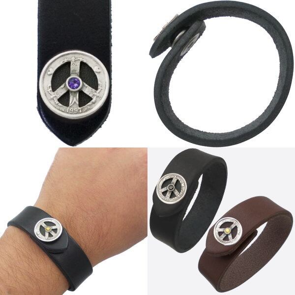 (9月)サファイア クローネ ピース コイン ブラックレザー ブレスレット 誕生石*BB-1017