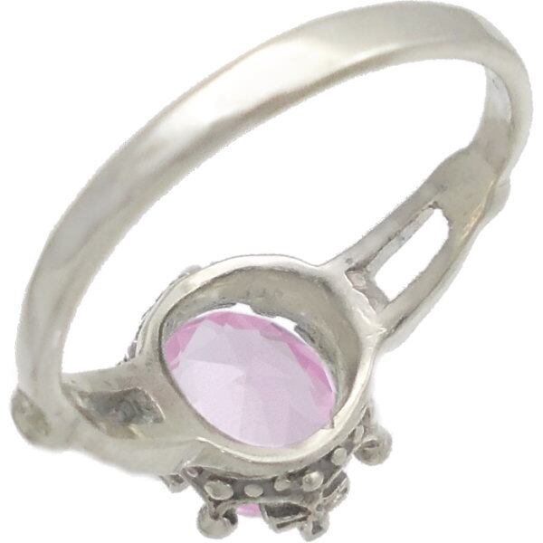 目を引くピンクのローズサファイアとクラウンのコンビ。石の存在感が十分に発揮されたシンプルな正面とストーンを取り巻く王冠モチーフとのマッチングが魅力。