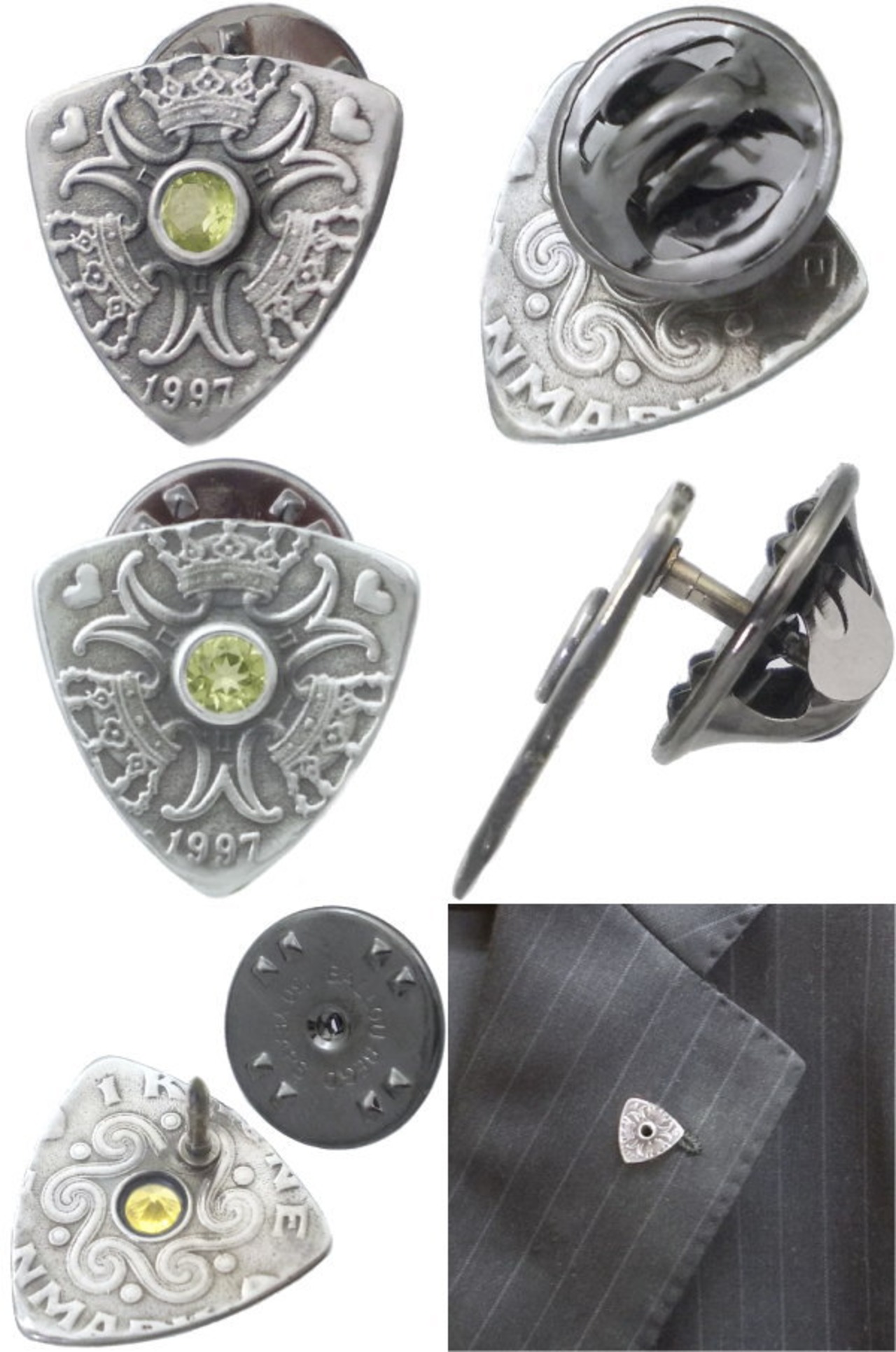 (8月)ペリドット クローネ コイン ピック シルバー ピンバッジ ピンズ*BK-1105